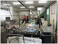 When the PET bottle is returned to an authorized redemption center, or to the original seller in some jurisdictions, the deposit is partly or fully refunded to the redeemer. In both cases the collected post-consumer PET is taken to recycling centres known as materials recovery facilities (MRF) where it is sorted and separated from other materials such as metal, objects made out of other rigid plastics such as PVC, HDPE, polypropylene, flexible plastics such as those used for bags (generally low density polyethylene), drink cartons, glass, and anything else which is not made out of PET.